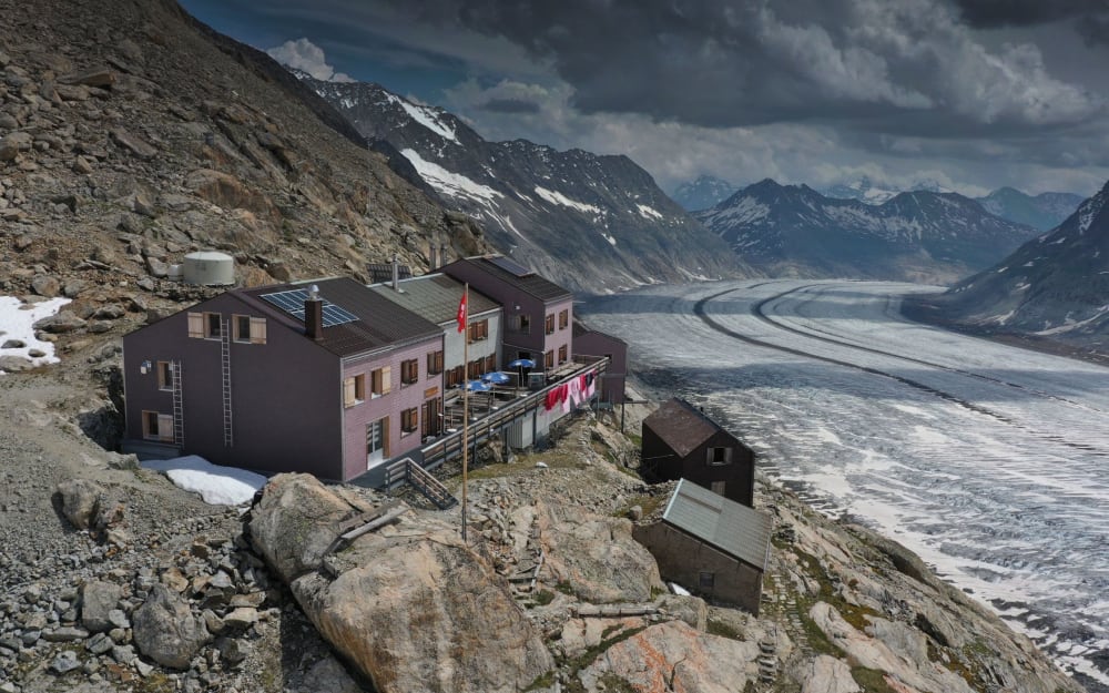 Die Konkordiahütte, eine moderne Berghütte des Schweizer Alpenclubs, liegt auf einem Felsvorsprung oberhalb des Gletschers am Konkordiaplatz. Obwohl die Hütte zeitgemäss ausgestattet ist, unterscheidet sich die Unterkunft grundlegend von einem Hostel im Tal. Die Logistik ist anspruchsvoll, da sämtliche Lebensmittel und Brennstoffe per Helikopter herangeschafft werden müssen. Wasserquellen in dieser Höhe sind ebenfalls nicht vorhanden, daher wird das Wasser mühsam aus Schnee gewonnen und äusserst sparsam verwendet. Deshalb fehlt auch eine Wasserspülung auf den Toiletten.