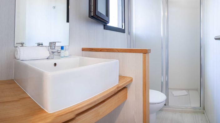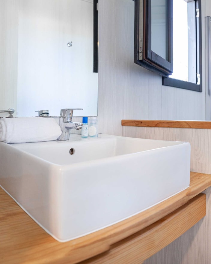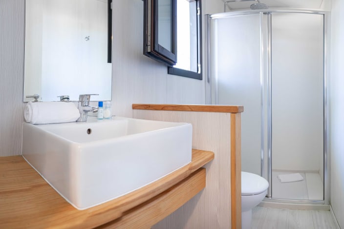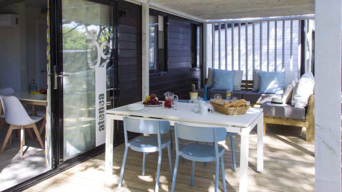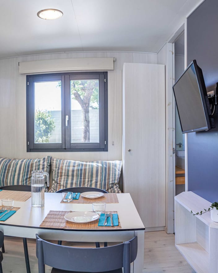 Ein haustierfreundliches Bungalow mit 2 Schlafzimmern, 1 Badezimmer und einer Aussenterrasse, um der Natur näher zu kommen. Das Hauptzimmer verfügt über ein Bett und das zweite Zimmer über ein Etagenbett sowie ein Einzelbett. Grosses Wohnzimmer mit Sofa, Tisch, Klimaanlage und Fernseher. Die vollausgestattete Küche und natürlich ihre Stärke: eine grosse Aussenterrasse mit einem Sofa, das zu jeder Jahreszeit mit dem Haustier genossen werden kann.