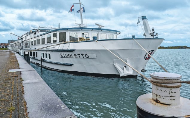 Die MS Rigoletto ist exklusiv für unsere Gruppe reserviert – das bedeutet: Kein Kreuzfahrtzwang! Auf dem gemütlichen und gepflegten Flussschiff mit schönem Salon, Bar, Rezeption, Bord-Shop, kleiner Bibliothek und Restaurant, wo wir unsere Mahlzeiten bei schöner Aussicht geniessen, werden wir uns sofort wie zuhause fühlen. Grosse Panoramafenster im Salon und dem Restaurant ermöglichen wunderschöne Ausblicke auf die vorbeiziehenden Landschaften. Alle öffentlichen Räume sind klimatisiert. Auf dem teilweise überdachten Sonnendeck mit Sitzplätzen, einer Aussenbar und Abstellmöglichkeiten für die Fahrräder geniessen wir erholsame Sonnen-Momente zwischen unseren Velotouren.